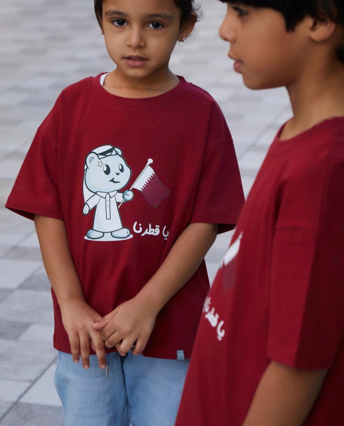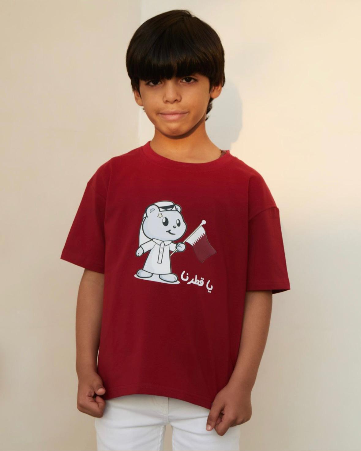 / Kids Tshirt- Remoon bear with Qatar flag